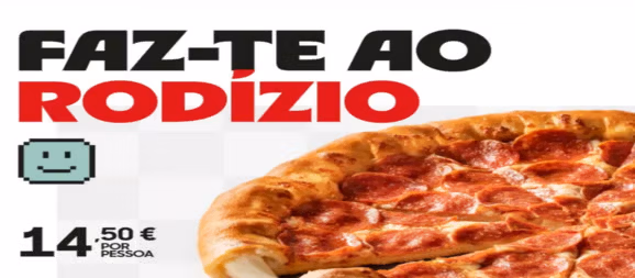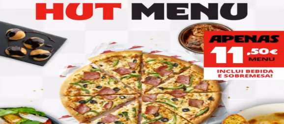 Serviço exclusivo para consumo no serviço à mesa dos restaurantes aderentes. Ofertas sujeitas a disponibilidade. Para mais informações consulta o colaborador de atendimento ou visita www.PizzaHut.pt/hutdeals. IVA incluído à taxa legal em vigor. Imagens ilustrativas.