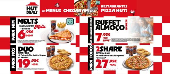 Rodízio de Pizzas. Entrada e sobremesa com porção fixa. Todas as nossas Pizzas são polvilhadas com Orégãos. Oferta válida de 29/10/2025 até 06/01/2026. Exclusivo para consumo nos restaurantes com Serviço à Mesa aderentes e para o mínimo de dois rodízios normais. Bebidas não incluídas. Para as crianças com menos de 6 anos, oferta das fatias de pizza. Para as crianças entre os 6 e os 12 anos 1 Rodízio + bebida Soft 25 cl ou Água por apenas 10€ (bebida néctar + 0,30€). No âmbito de boas práticas de sustentabilidade e consumo responsável, cada fatia de pizza não consumida tem o valor de 1,50€, acrescido de taxa em vigor de utilização de caixa para transporte. Não desperdices as fatias! A Pizza Hut reserva-se ao direito de alterar as condições descritas sem aviso prévio. Para mais informações, horário disponível, restaurantes aderentes e reservas, consulta o nosso Responsável de Serviço. IVA incluído à taxa legal em vigor. Imagens ilustrativas. Informação também disponível em www.PizzaHut.pt/rodizio Faz o teu pedido de reserva em PizzaHut.pt/reservas
