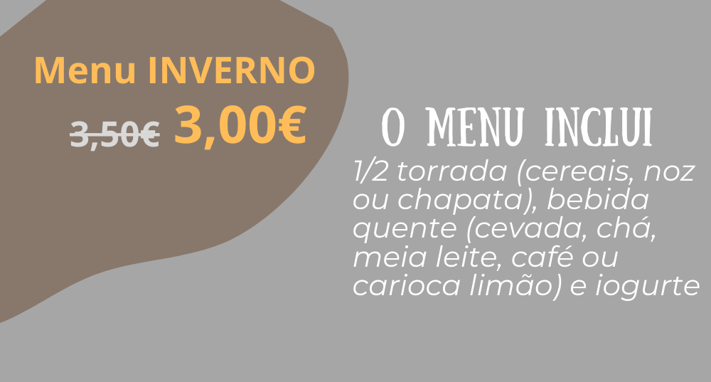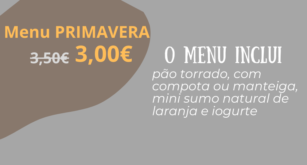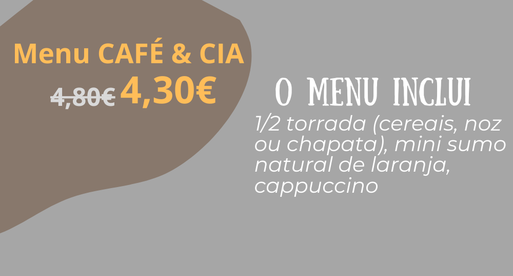 O menu inclui: 1/2 torrada ( cereais, noz ou chapata) mini sumo natural de laranja e iogurte.