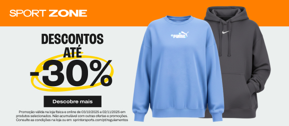 Saldos válidos de 02/01/2025 a 28/02/2025 em produtos selecionados. Não acumulável com outras ofertas e promoções. Consulta as condições na loja ou em sprintersports.com/pt/regulamentos